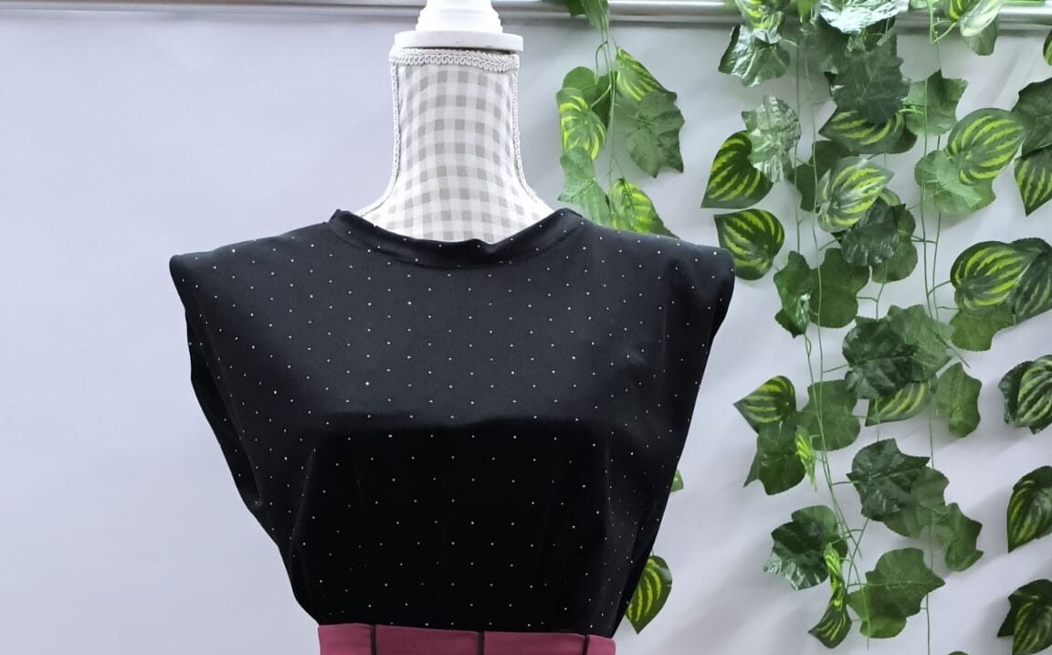 Este jersey negro de terciopelo y licra con diseño de puntitos es la combinación perfecta de suavidad y estilo. Su tejido elástico se adapta cómodamente al cuerpo, mientras que el detalle de los puntitos le da un toque elegante y moderno. Ideal para combinar con faldas o pantalones, este jersey es una prenda versátil y chic, perfecta para el día a día o para ocasiones especiales. ¡Un must-have para tu armario!