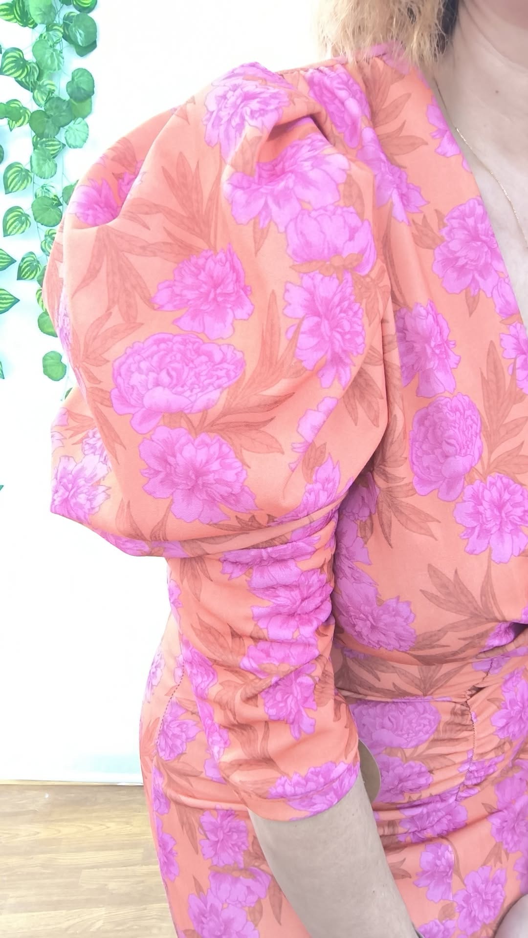 VESTIDO DE TELA DE CREPÉ CON MANGA DE JAMÓN Y CORTE FRANCESA